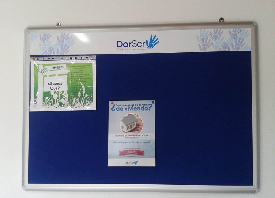 Este es su testimonio: “Las opciones que nos ofrecían en cartelerascorporativas.com nos parecieron muy buenas porque permitían un nivel de personalización para la cartelera corporativa, muy alta. En cuanto a la entrega y el envío fueron puntuales y todo se dio según lo acordado. La persona encargada estuvo siempre dispuesta a resolver todas las dudas que tuvimos y gracias a eso el trabajo fue de nuestro total agrado.” Natalia Perez (Comunicadora DarSer)
