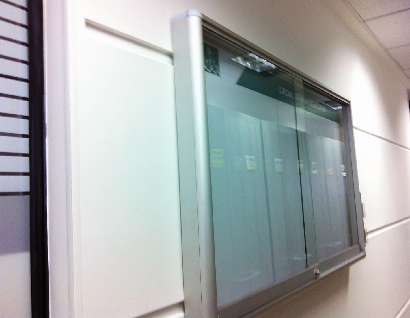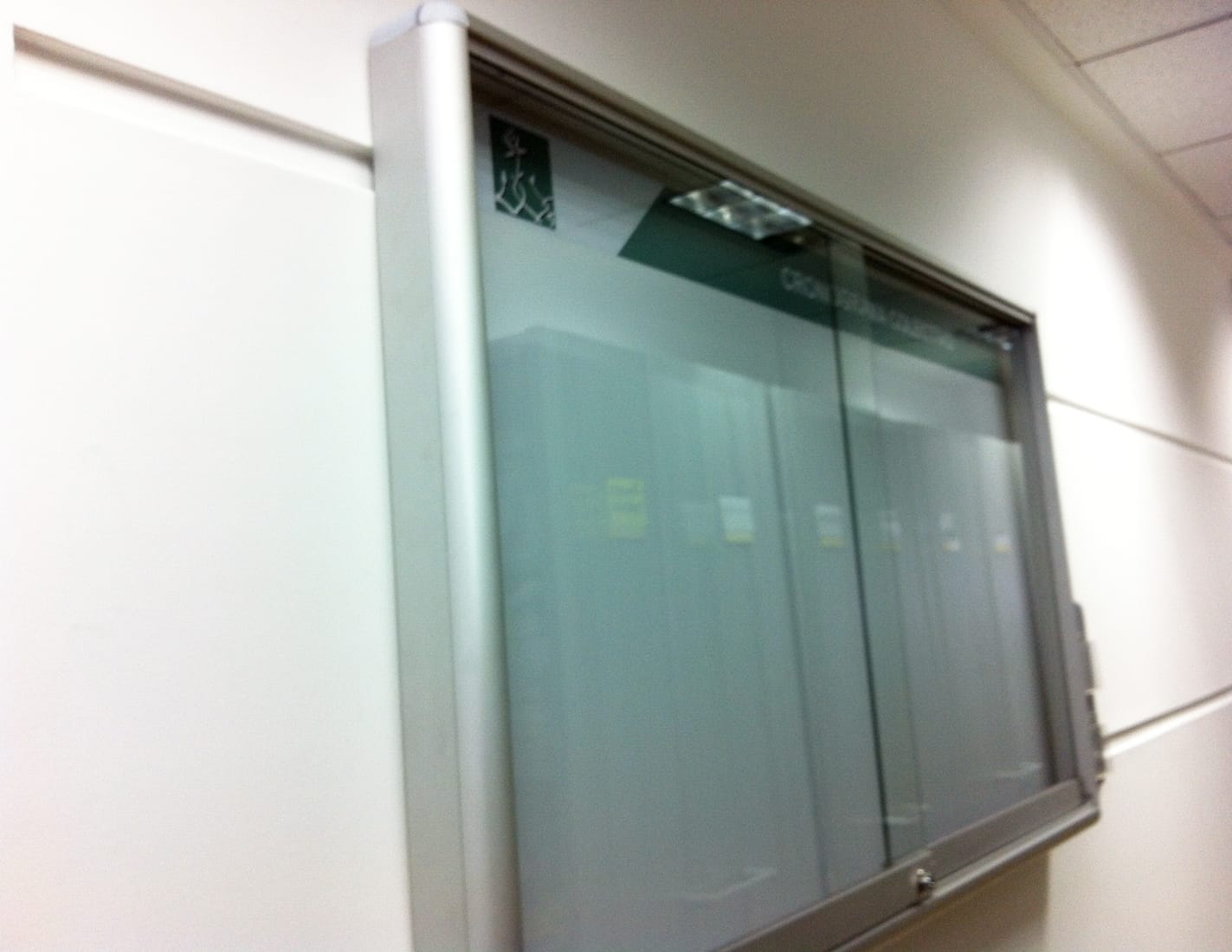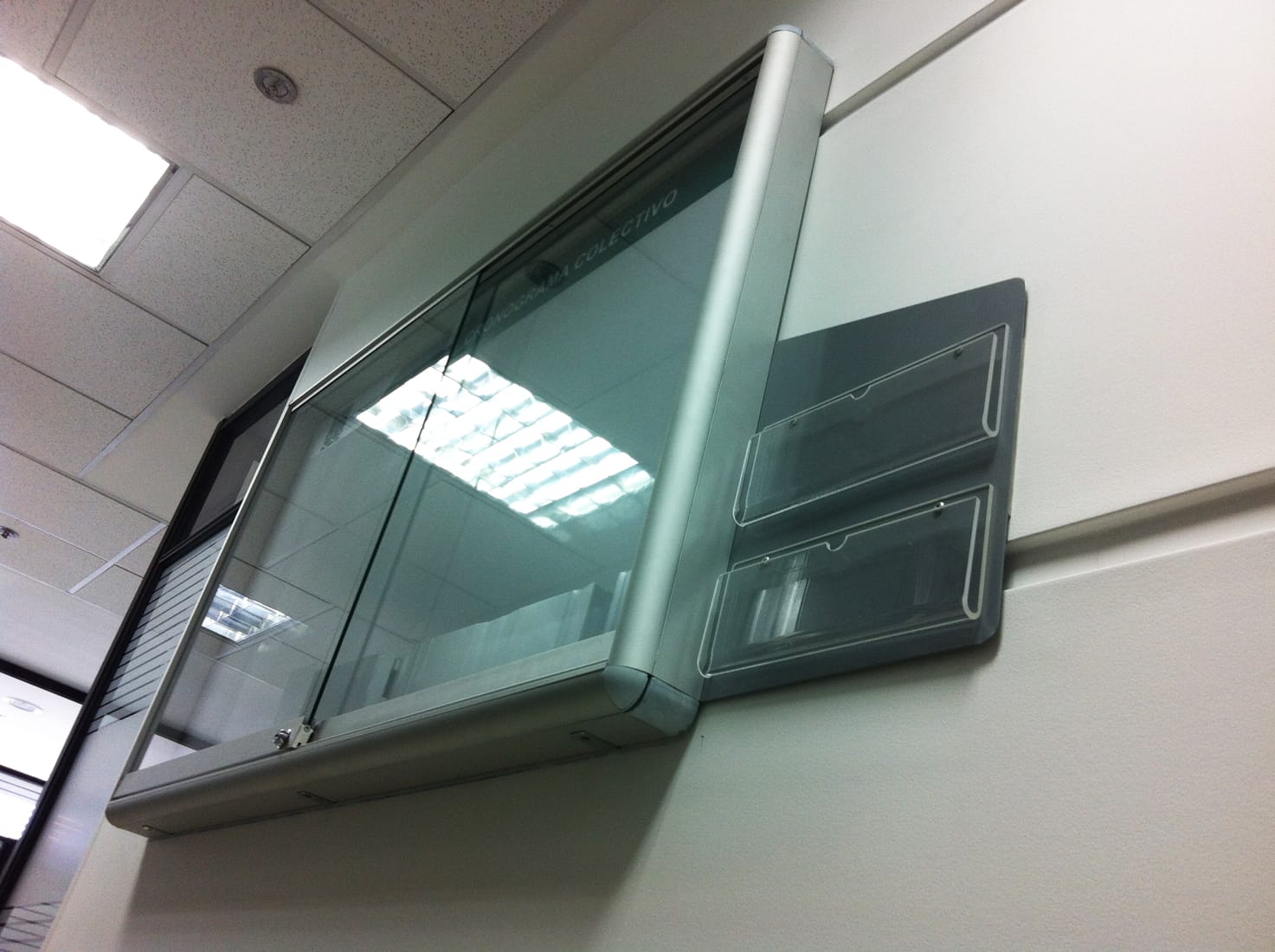 La cartelera es tipo vitrina magnética doble funcionalidad: tablero borrable y cartelera para pegar información con imanes. La cartelera lleva cenefa superior con logo de la entidad, vidrios corredizos de 5mm y chapa de seguridad, el marco es en aluminio tubular y ¼ de circulo, en uno de sus lados lleva un bolsillo lateral para portar fichas.